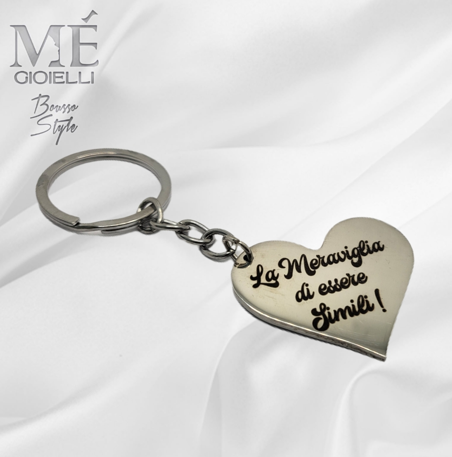 Il Portachiavi Cuore Trasversal Personalizzabile viene spedito confezionato in un sacchetto regalo a sua volta inserito nella shopper loggata me gioielli.